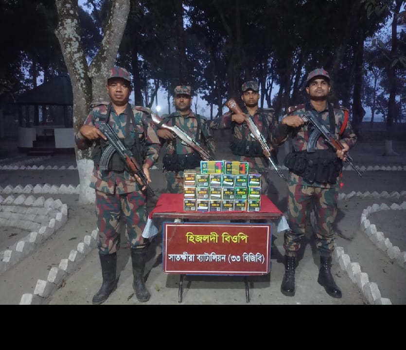 সাতক্ষীরার কলারোয়া সীমান্তে চোরাচালানবিরোধী পৃথক অভিযানে বিপুল পরিমাণ ভারতীয় পণ্য জব্দ করেছে বর্ডার গার্ড বাংলাদেশ (বিজিবি)। উদ্ধারকৃত পণ্যের আনুমানিক বাজারমূল্য প্রায় ২৩ লাখ টাকা বলে জানিয়েছে সংশ্লিষ্ট কর্তৃপক্ষ। শুক্রবার (১৩ মার্চ) সাতক্ষীরা ব্যাটালিয়ন (৩৩ বিজিবি) এক প্রেসবিজ্ঞপ্তিতে জানায়, সীমান্তবর্তী বিভিন্ন স্থানে পরিচালিত বিশেষ অভিযানে এসব চোরাচালান পণ্য জব্দ করা হয়েছে। প্রেসবিজ্ঞপ্তিতে বলা হয়, মাদরা বিওপির একটি বিশেষ আভিযানিক দল সীমান্ত পিলার ১৩/৩ এস-এর ০৮ আরবি সংলগ্ন এলাকা থেকে কলারোয়া থানাধীন উত্তর ভাদিয়ালি গ্রাম থেকে প্রায় ১ লাখ ৪০ হাজার টাকা মূল্যের ভারতীয় ওষুধ উদ্ধার করেছে। একই দিনে কাকডাঙ্গা বিওপির আরেকটি দল ভাদিয়ালি এলাকা থেকে প্রায় ৮০ হাজার টাকা মূল্যের ভারতীয় শার্ট জব্দ করে। মাদরা বিওপির সদস্যরা তেঁতুলতলা মাঠ এলাকায় অভিযান চালিয়ে প্রায় ৩৫ হাজার টাকা মূল্যের ভারতীয় শাড়ি উদ্ধার করেন। অপরদিকে, সুলতানপুর বিওপির আভিযানিক দল আমবাগান এলাকা থেকে প্রায় ১ লাখ ৫ হাজার টাকা মূল্যের ভারতীয় ওষুধ জব্দ করে। সবচেয়ে বড় চালানটি হিজলদি বিওপির সদস্যরা উদ্ধার করেন। তারা বড়ালি নদীরপাড় এলাকায় অভিযান চালিয়ে প্রায় ২০ লাখ ৪৪ হাজার টাকা মূল্যের ভারতীয় মোবাইল ডিসপ্লে আটক করেন। বিজিবি সূত্রে জানা গেছে, পৃথক এসব অভিযানে সর্বমোট ২২ লাখ ৭৮ হাজার টাকা মূল্যের চোরাচালানি পণ্য জব্দ করা হয়েছে। সাতক্ষীরা ব্যাটালিয়নের (৩৩ বিজিবি) অধিনায়ক লেফটেন্যান্ট কর্নেল কাজী আশিকুর রহমান এই অভিযানের সত্যতা প্রেসবিজ্ঞপ্তিতে নিশ্চিত করেছেন।