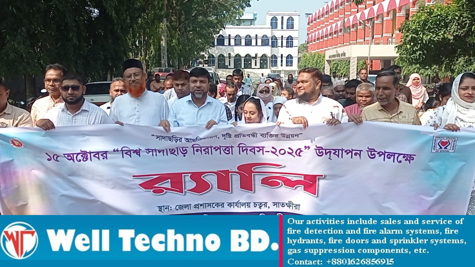 সাদাছড়ির আধুনিকায়ন, দৃষ্টি প্রতিবন্ধী ব্যক্তির উন্নয়ন এই প্রতিপাদকে সামনে রেখে সাতক্ষীরায় বিশ্ব সাদাছড়ি নিরাপত্তা দিবস-২০২৫ যখন উপলক্ষে বর্ণাঢ্য র্যালি, আলোচনা সভা ও সাদাছড়ি বিতরণ অনুষ্ঠিত হয়েছে।