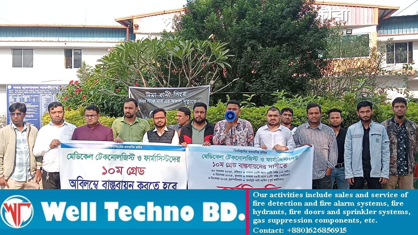 এসম বক্তারা বলেন, বাংলাদেশের সকল ডিপ্লোমাধারীরা দশম গ্রেড হলেও শুধুমাত্র মেডিকেল টেকনোলজিষ্ট ও ফার্মাসিস্টরা ১১ গ্রেড রয়ে গেছে। এই দশম গ্রেড তাদের দাবি নয় এটি তাদের অধিকার।