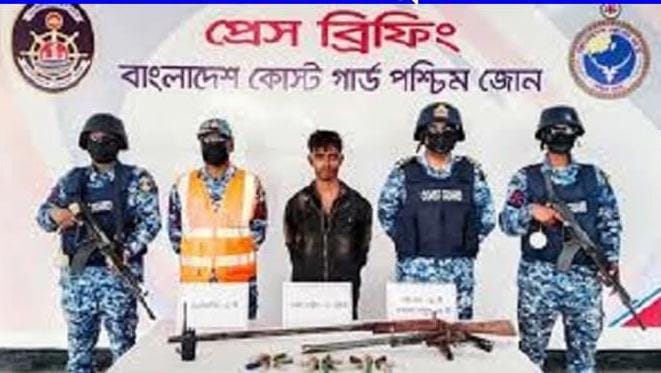 পরে তাঁকে প্রাথমিক জিজ্ঞাসাবাদে পাওয়া তথ্যের ভিত্তিতে সকাল ১১টার দিকে মোংলা থানার পাশাখালী ফরেস্ট অফিস সংলগ্ন এলাকায় অভিযান চালায় কোস্টগার্ড। সেখানে মাটির নিচে পুঁতে রাখা অবস্থায় একটি শটগান, একটি একনলা বন্দুক, ২১ রাউন্ড তাজা কার্তুজ ও একটি ওয়াকিটকি সেট উদ্ধার করা হয়।