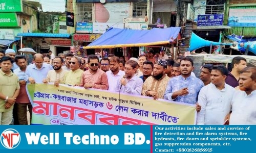 চট্টগ্রাম-কক্সবাজার মহাসড়ক ৬ লেনে উন্নীত দাবিতে মানববন্ধন